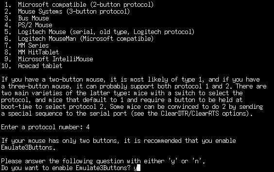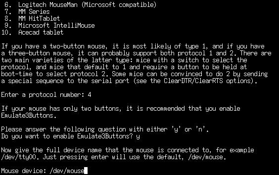 If your mouse has only two buttons on it, you can choose to emulate a third button. Clicking both the left and right mouse buttons at the same time will be interpreted as a third button click. As many programs will make use of a third button, enabling it is recommended. If you have a three button mouse, this won't do anything.