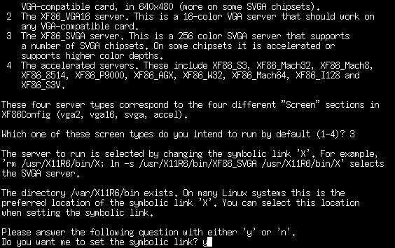 Select “y” for setting the symbolic link. This will set up a link to the appropriate X server.